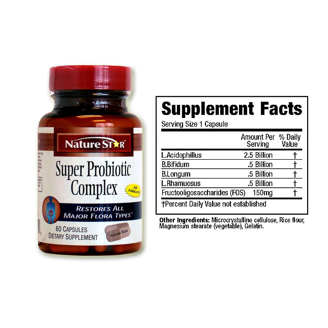 Probiotics, or “friendly flora’ aid in digestion, and produce digestive enzymes such as protease, amylase, cellulose, and lipase that assist in breaking down protein, fats, carbohydrates, and fiber. A healthy digestive tract contains multi-strain Probiotic bacteria, ‘friendly bacteria” as well as harmful bacteria that compete in colonizing the intestinal mucosal walls. Naturestar Super Probiotic has more than 3.5 BILLION live bacterias in each capsule at time of manufacture. The content is more than most other brands' probiotic products.