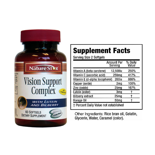 NatureStar’s Vision Support Complex provides a blend of powerful antioxidants including; Vitamin A, C, and E along with Copper, Zinc, Lutein, Bilberry, and Borage Oil.